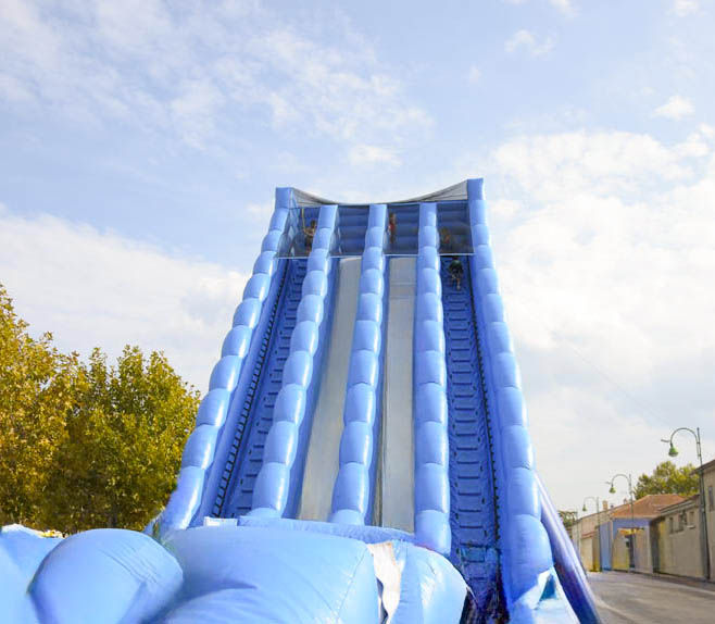 Oubliez les toboggans classiques. Le Crazy Slide XXL est une pure dose d'adrénaline. Grimpez, prenez une grande inspiration au sommet et lancez-vous dans une course effrénée contre votre voisin sur notre double piste de glisse ! C'est l'attraction ultime pour les amateurs de sensations fortes et de défis amicaux. Plus haut, plus vite, plus fun. Le premier en bas a gagné ! (Fonctionne sans eau en mode sec uniquement). C'est l'attraction spectaculaire phare pour votre événement. Contactez-nous pour un devis.