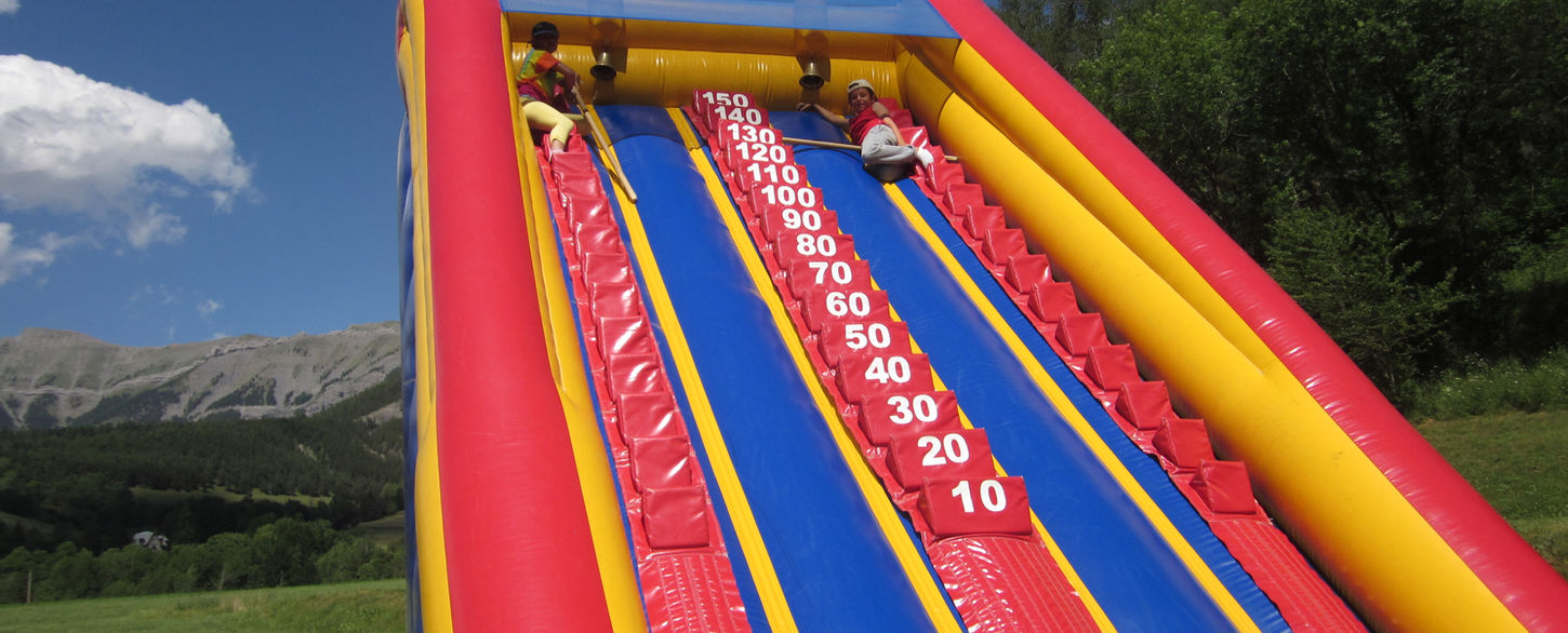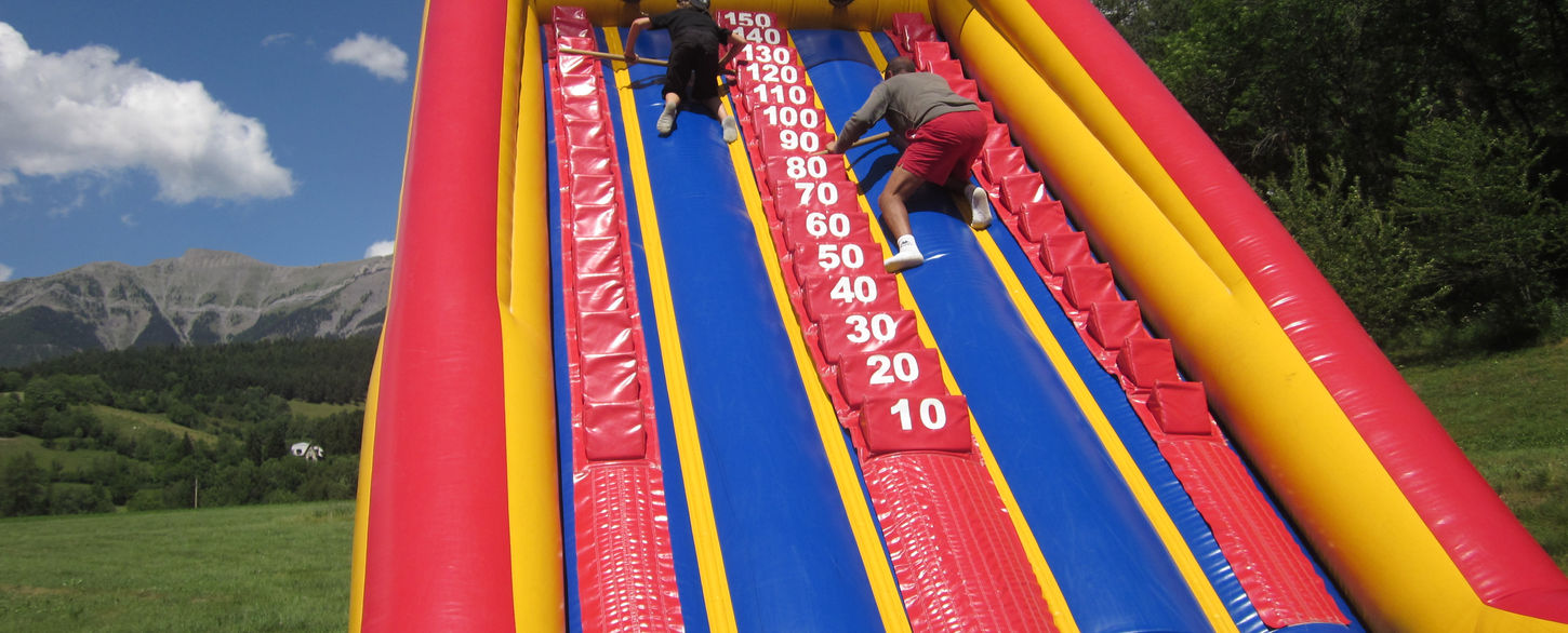 Le défi sportif gonflable version "intervilles" avec ce challenge de force et de rapidité. Qui sera le premier à faire sonner la cloche ? A l'aide de son bâton chaque joueur se hisse à la force des bras au fur et à mesure des graduations. Variantes pour les plus jeunes avec des grimpes, glissades et relais...